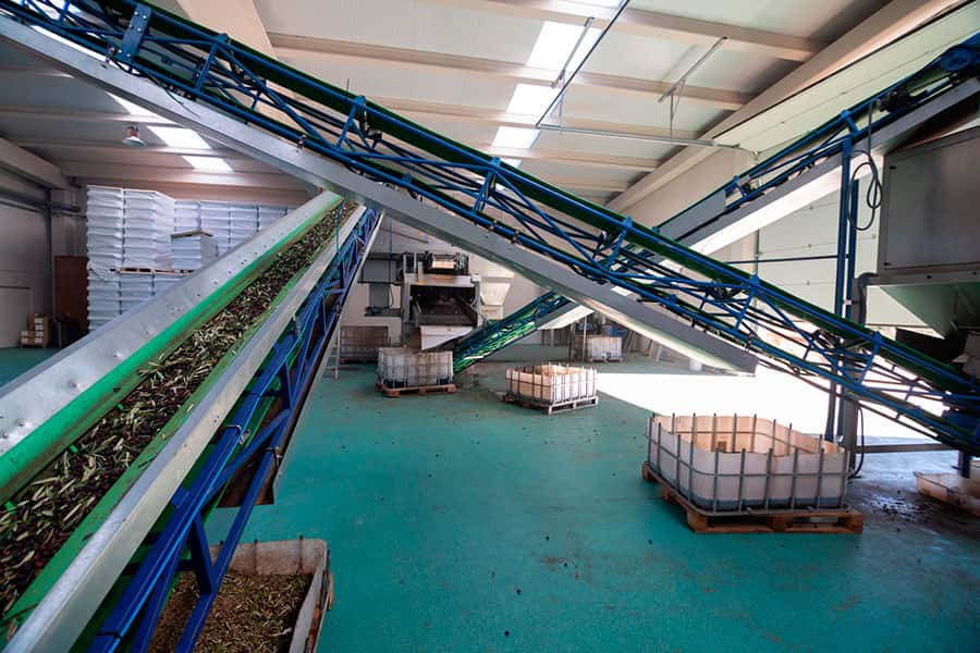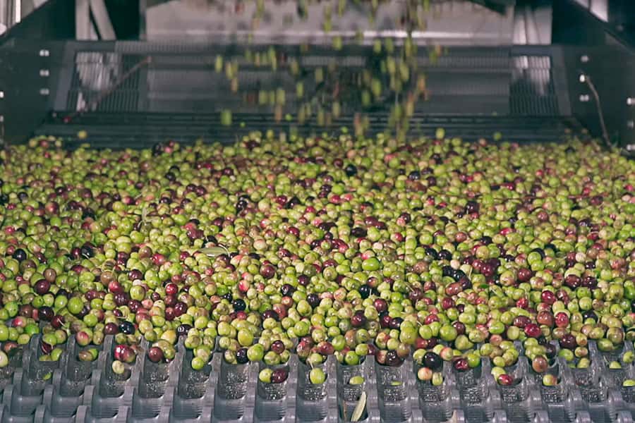 A lo largo del día, vamos recibiendo en la almazara las partidas de aceitunas recién recolectadas, éstas son sometidas a una inspección visual para ver el estado del fruto, verificando que esté sano y con buen aspecto exterior. A continuación son procesadas en la zona de limpieza, donde las hojas son sopladas, las ramas extraídas y las aceitunas lavadas, para su posterior almacenamiento en las tolvas de acero inoxidable y su inmediato procesado.